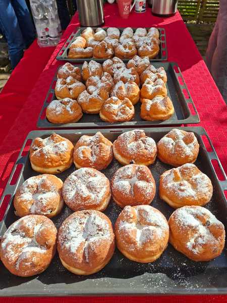 Wir wurden sehr herzlich von Fam. Jakob erwartet. Der Tisch war schon gedeckt, mit herrlichen Schmalznudeln, gebacken von Sofie, dazu gab es Kaffee, Orangenpunsch, den Gabi Gürtner noch zubereitet